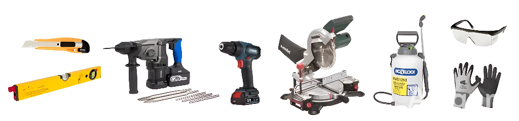 Les outils généraux regroupent tout le matériel utile quelle que soit votre implantation (au sol, sur muret, en découpe…). Ils constituent la base d’une installation réussie, notamment pour sécuriser le chantier, vérifier l’aplomb et garantir la stabilité de la structure.