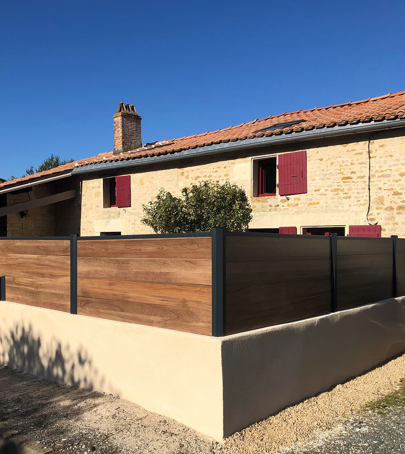 La pose sur muret nécessite des outils spécifiques, car il faut percer le support afin d’y sceller les inserts métalliques. Ce type d’installation est idéal lorsque l’on souhaite rehausser un muret existant, améliorer l’intimité ou donner un style plus contemporain à une maison en pierre ou crépi.