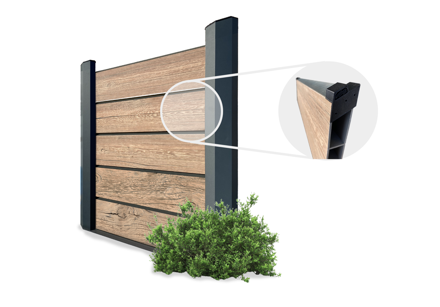 Vis-à-vis réduit, hauteur modulable, ventilation naturelle, effet bois saisissant.