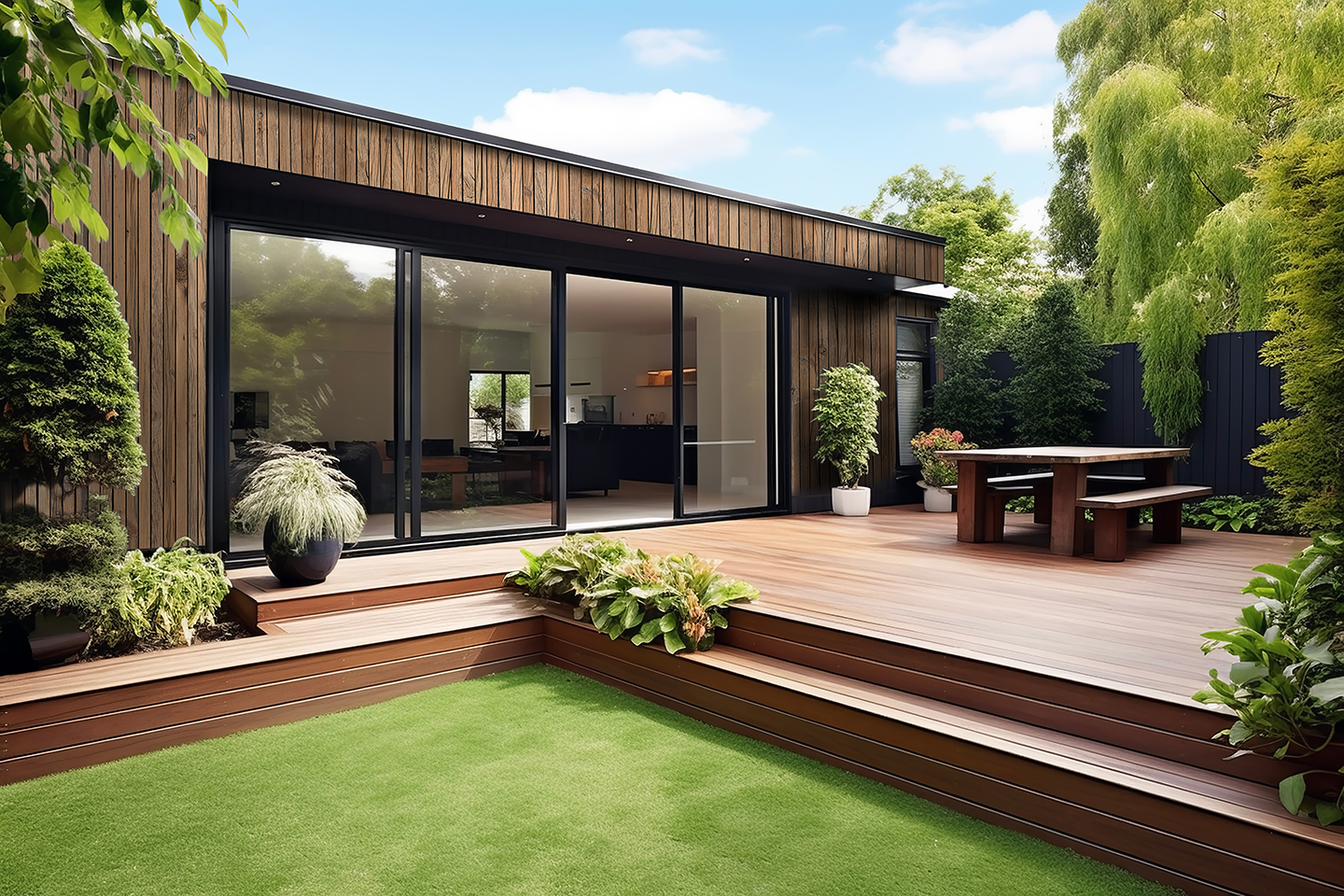 Nos produits sont pensés pour durer : résistants aux UV, à l’humidité, aux termites, champignons et moisissures, ils gardent leur éclat et leurs couleurs dans le temps. Aucun entretien contraignant : ni lasure, ni vernis, ni peinture, un simple coup d’éponge suffit.