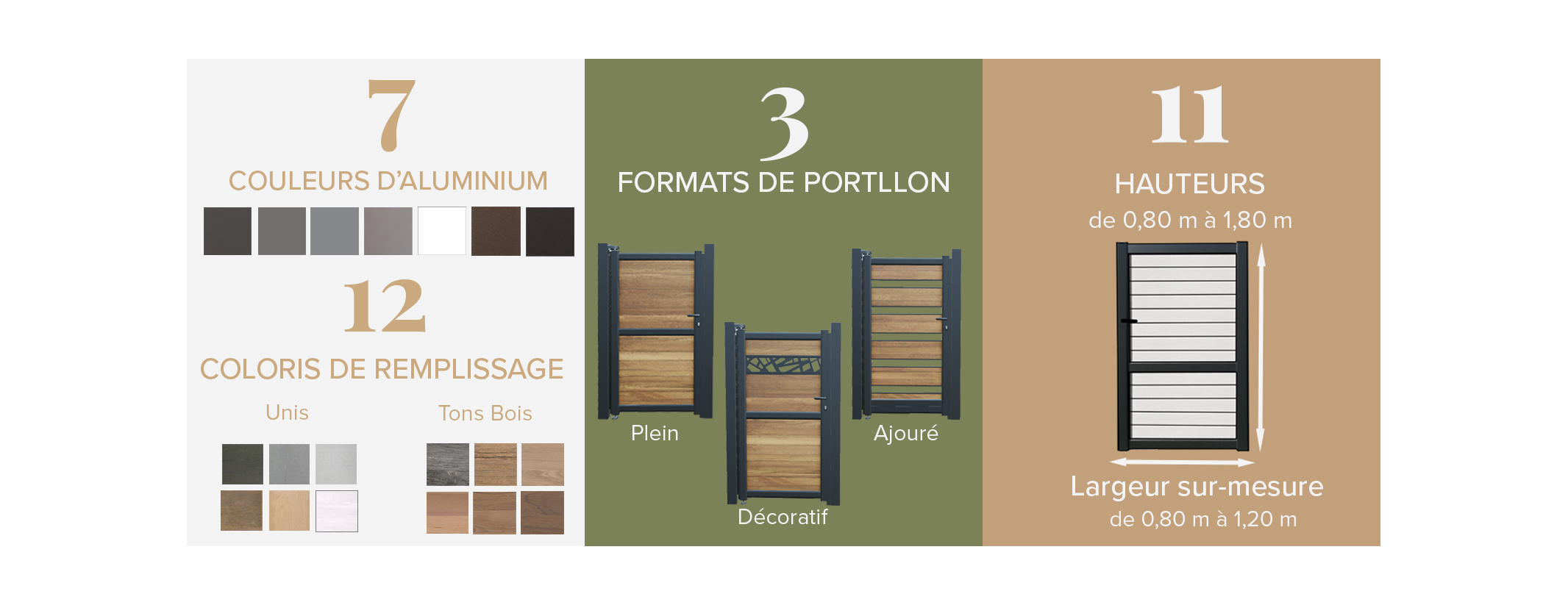 Fabriqués en France dans nos ateliers, nos portillons existent en versions standard et sur-mesure, avec des dimensions allant de 0,80 m à 1,20 m de large et de 0,80 m à 1,80 m de haut.