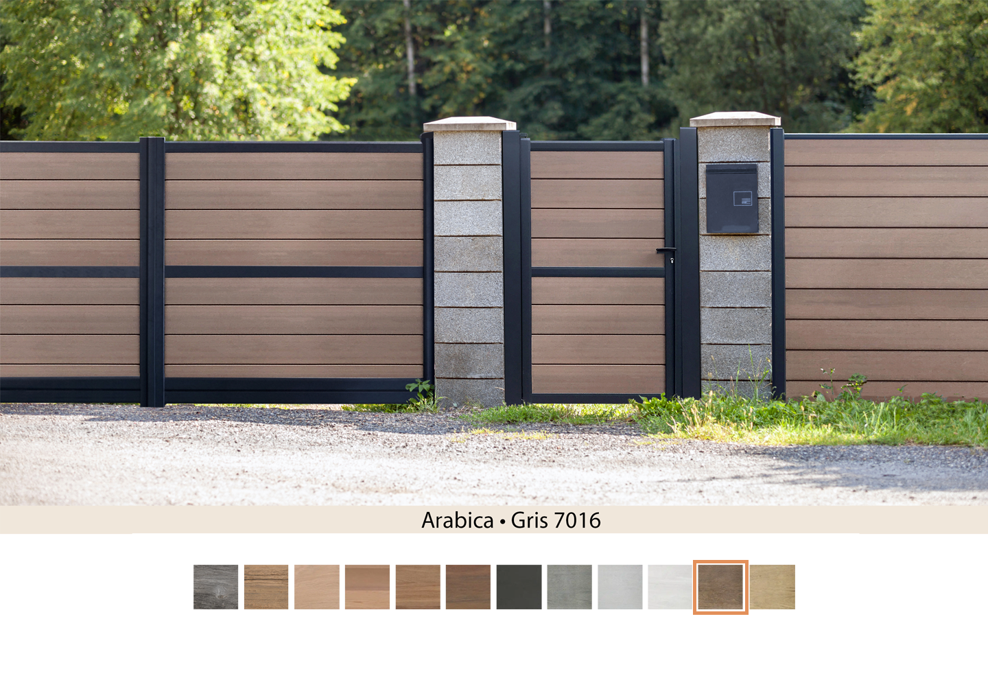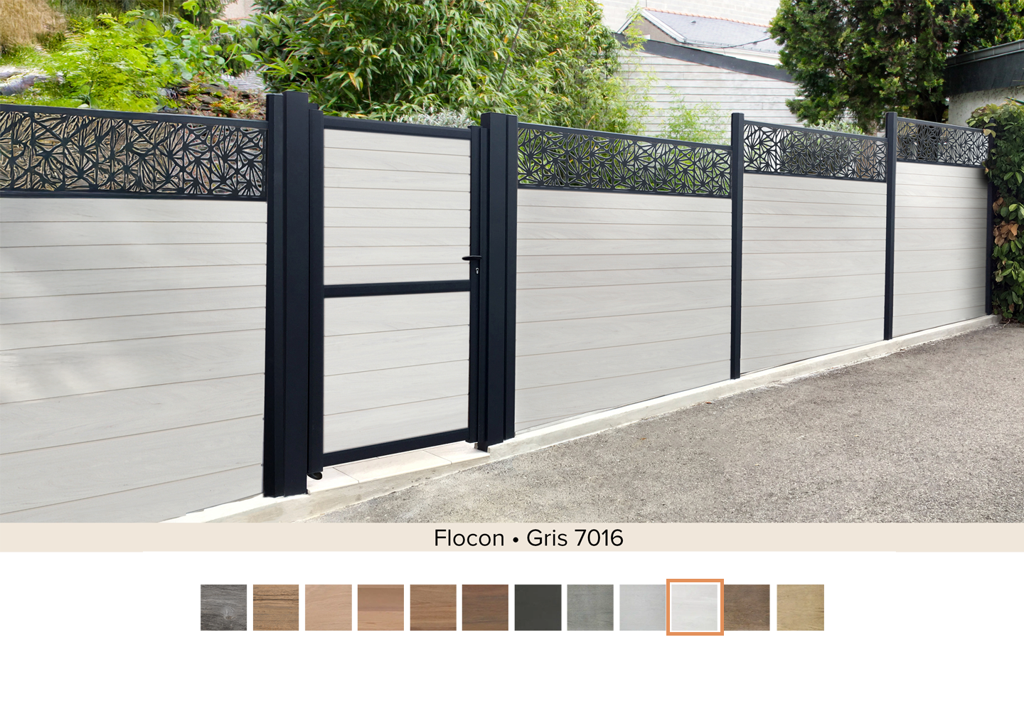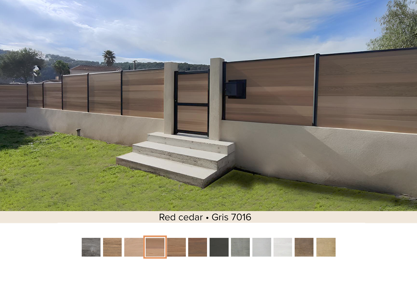 Plus qu’un simple accès, notre portillon est pensé comme une véritable extension harmonieuse de votre aménagement extérieur. Fabriqué en composite recyclé avec un cadre en aluminium, il combine esthétisme, robustesse et praticité au quotidien. Disponible en teintes unies modernes ou avec notre finition esthétique bois Tech·Sture®, il s’intègre naturellement à tous les styles d’habitat, du plus contemporain au plus chaleureux.